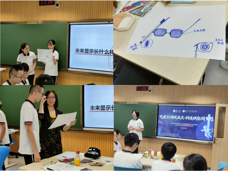 讲座后,乔文带领大家开展“未来显示”主题讨论,请同学们自行设计制作“我眼中的未来显示器”。同学们发挥想象,积极展示小组成果,并分别评选出 “设计最好”、“绘画最好”、“演讲最好“的作品。获奖同学发表获奖感言,活动气氛达到高潮。