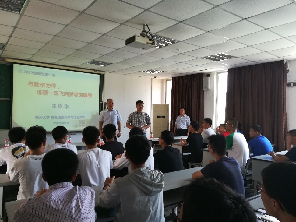 院长王钦华教授为2017级本科新生开启了题为《与勤奋为伴,练硬一双飞向梦想的翅膀》的新生第一课,他用生动的比喻祝愿同学们在永利皇宫这个“健身房”,刻苦锻炼,塑造“完美肌肉”。王院长首先介绍了永利皇宫的历史沿革和发展现状,以及学部的发展历史、师资队伍和学科专业方向。接着,他重点介绍了光电永利皇宫