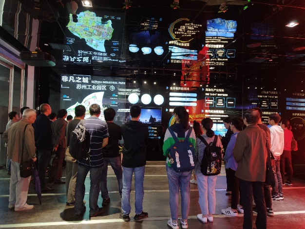 下午1点半,主题教育第八指导组副组长袁洁、永利皇宫 党政领导、党委委员、支部书记和委员、学生代表及部分退休教师代表等一行22人,驱车赴苏州工业园区人工智能展览馆参观学习交流,集体学习的第二环节开始。