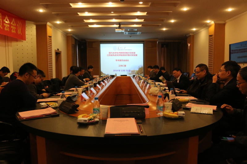 2018年12月25日,永利皇宫-永利博彩-永利皇宫官网 现代光学技术教育部重点实验室/江苏省先进光学制造技术重点实验室学术委员会会议在永利皇宫本部红楼会议中心召开。实验室学术委员会名誉主任潘君骅院士、主任庄松林院士、副主任王钦华教授、委员姜会林院士、刘旭教授、王慧田教授、崔一平教授、陈钱教授、陆延青教授、徐科研究员、陆振刚教授(代谭久彬院士)等出席会议。我校科学技术研究部科学技术处处长钱福良、永利皇宫-永利博彩-永利皇宫官网 院长李孝峰、永利皇宫-永利博彩-永利皇宫官网 党委书记陈建军以及实验室主要学术骨干参加了会议。