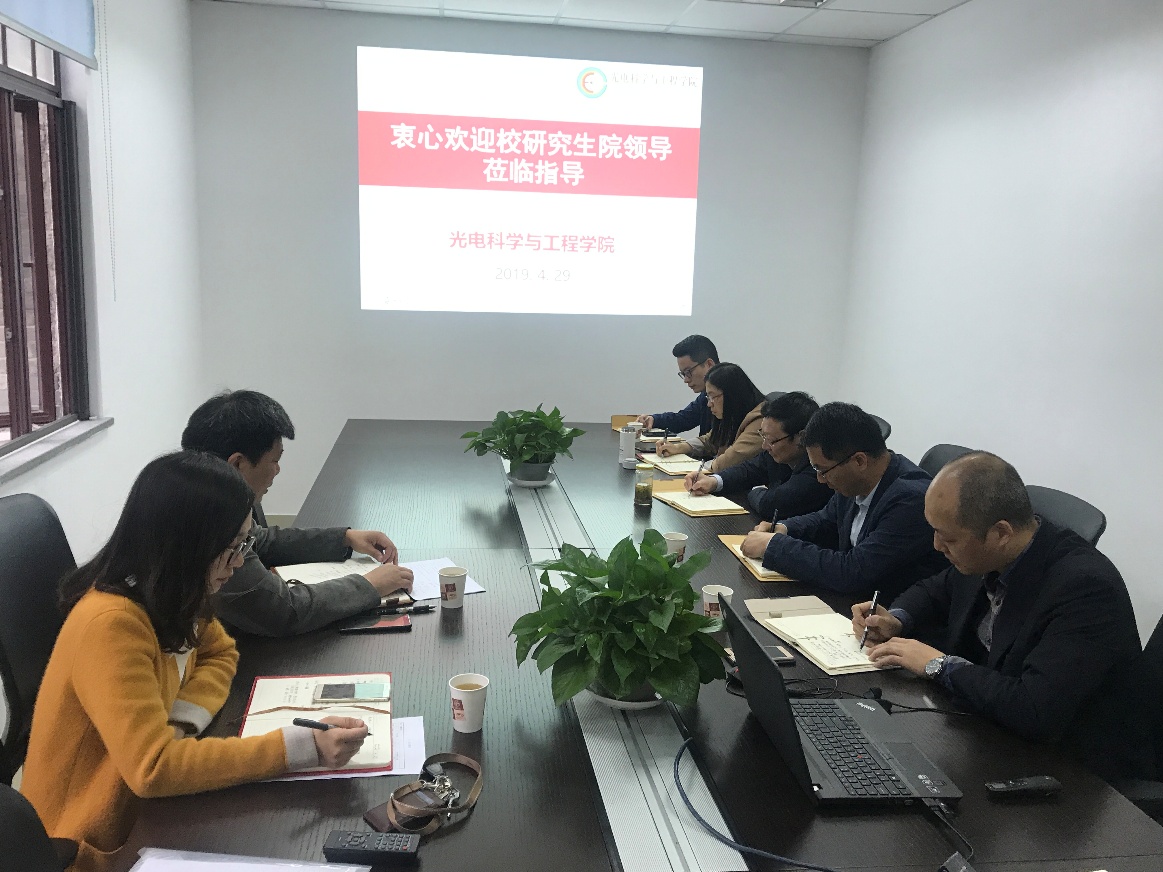 2019年4月29日上午8点,学校研究生院副院长张进平、培养办公室质量监控与评估科科长刘遥一行莅临永利皇宫-永利博彩-永利皇宫官网 调研指导,并在永利皇宫 110会议室召开了专题研讨会。永利皇宫-永利博彩-永利皇宫官网 院长李孝峰、党委书记陈建军、副院长许宜申、院长助理张桂菊和陈煜、教务与科研办公室主任王晴出席了会议。