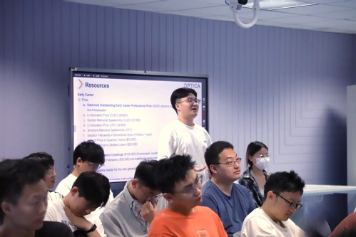 为积极响应国家对高层次人才的需求,进一步推动研究生教育的国际化进程,拓宽研究生的国际视野,永利皇宫 于2024年7月12日在激光楼116会议室举办了OPTICA学生分会交流会。本次会议旨在促进学术交流和国际合作,为永利皇宫 研究生提供一个分享经验、探讨话题的平台。本次活动由永利皇宫 副院长王长擂主持,特邀美国光学学会(OPTICA)大使潘安博士和于林卉博士做分享交流。出席本次活动的有永利皇宫 师生代表和苏州科技大学师生代表,以期激发OPTICA学生分会的活力,扩大国际影响力。